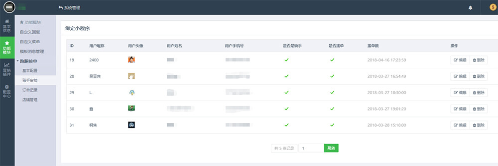 2、通过平台方认证并审核通过后骑手可在手机端接单