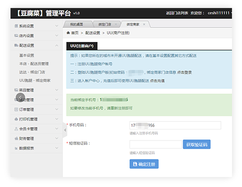 1、添加店铺信息、设置配送价格(注:配送价格若不设置默认以基本配置里的平台配送价格为准,若设置则以此设置价格为准收取每单的跑腿费)